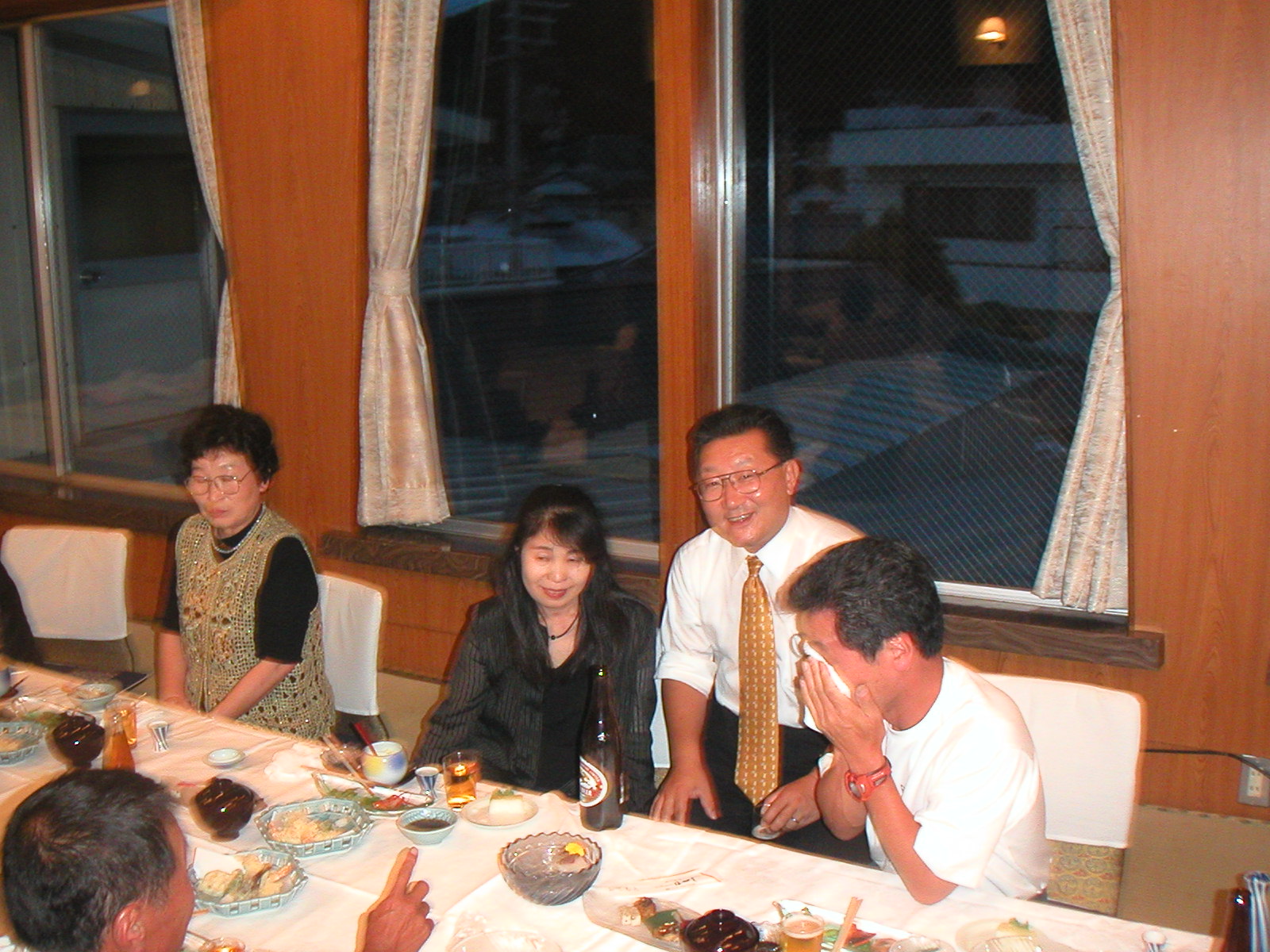 平成16年6月27日、安原支部懇親会にてごきげんさんの図 |